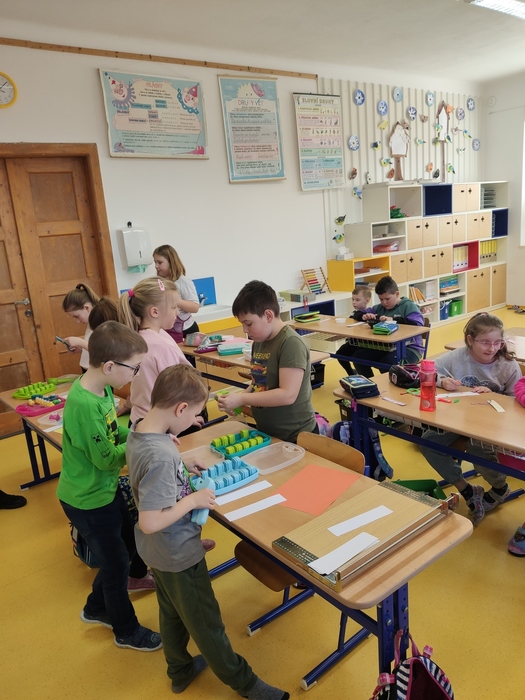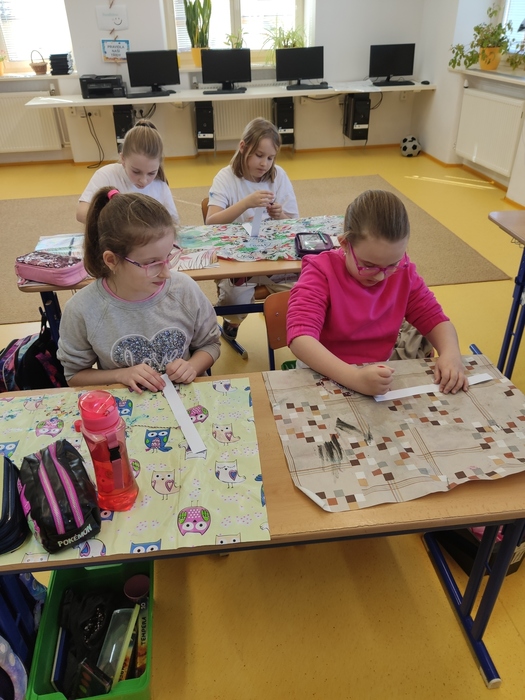 V pátek v hodině výtvarné a pracovní činnosti se žáci seznámili s technikou embosování. Dozvěděli se v čem tato technika spočívá. Měli možnost vyzkoušet práci s embosovacím strojem a embosovacími kleštěmi - díky nimž si každý vytvořil originální záložku do knihy.