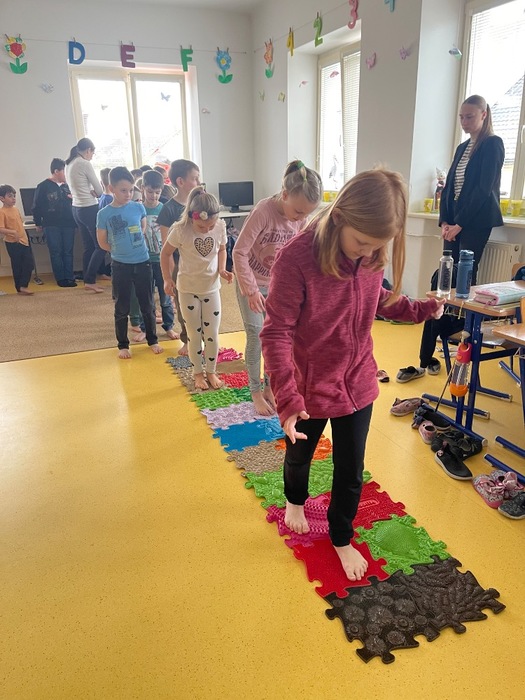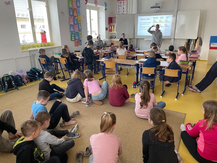 KHS ZK k nám zavítala v rámci všeobecné prevence s pěkným programem JDEME DRAVÍ NAPROTI, který se skládal ze dvou částí. První byla spíše teoretická, kdy si s pomocí prezentace lektorka vykládala s dětmi o zdraví, nebezpečí, které souvisí s jídlem, našim každodenním chováním, co se vlastní osoby týče atd. Děti viděly, jak se má správně sedět na židli, co způsobí neustálé hrbení se na židli a některým lektorka zkontrolovala správné utáhnutí aktovek. V další části se žáci naučili jednoduché cviky s prsty a chodidly, kterými lze podpořit boj proti plochým nohám a vyzkoušeli si masážní cestičku. V rámci dvou vyučovacích hodin se žáci prvního až třetího ročníku nenudili a náležitě si to užili.