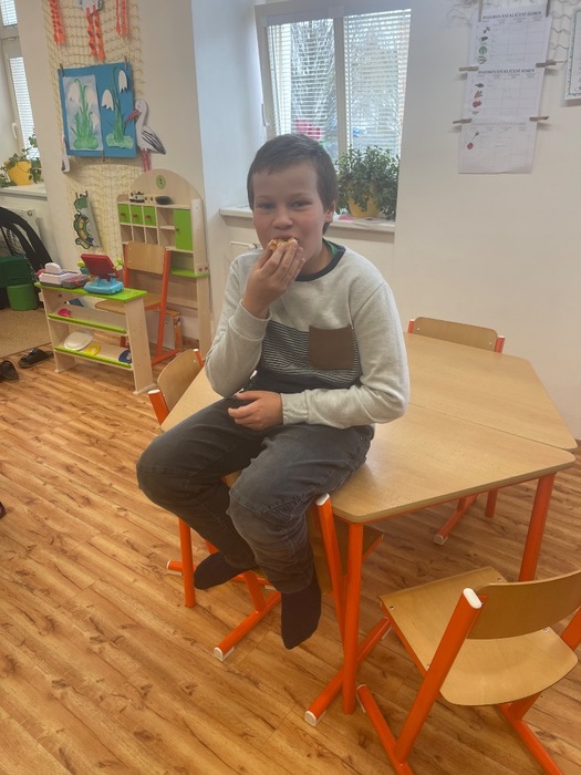V rámci kroužku angličtiny jsme se pustili se staršími žáky posledního března do pečení. Chlapci připravili dle receptu a pokynů pizza kroužky a děvčata pekla kefírovou buchtu. Společně si po vychladnutí na kroužcích pochutnali. Buchtu si dali následující den ke svačince.