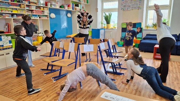 Děti pracovaly ve skupinách, které vznikly na základě náhodného rozdělení podle barev. Tento způsob podpořil i spolupráci mezi žáky a umožnil jim poznat druhé z jiného úhlu pohledu . V průběhu programu si děti vyzkoušely různá stanoviště, na kterých plnily rozmanité úkoly zaměřené na procvičení mozku i těla. Každý pedagog měl připravené jiné aktivity v rámci daného časového intervalu, díky čemuž byl program pestrý a děti si mohly rozvíjet různé dovednosti zábavnou a hravou formou.